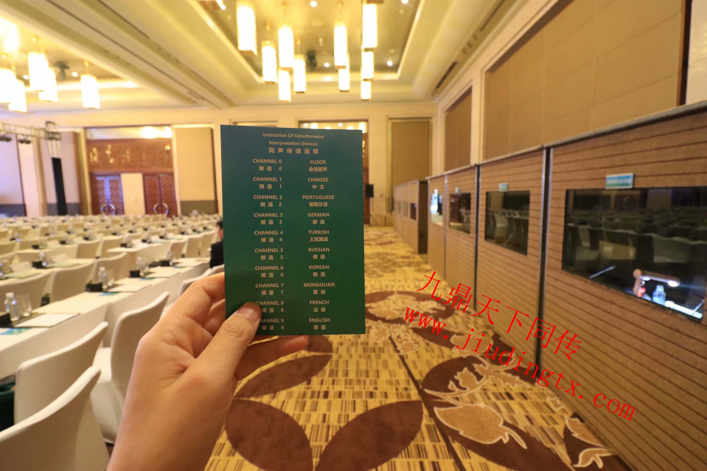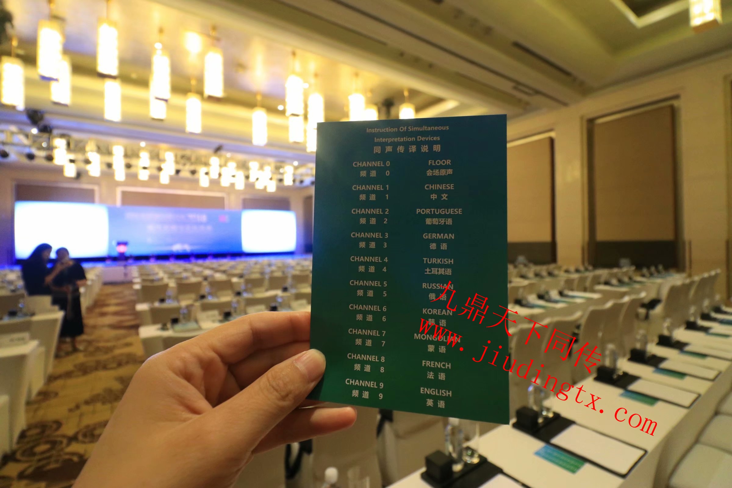 九鼎天下公司为本次活动提供英语同传、葡萄牙语同传、德语同传、法语同传、蒙语同传、土耳其语同传、俄语同传、韩语同传等八个语言。
