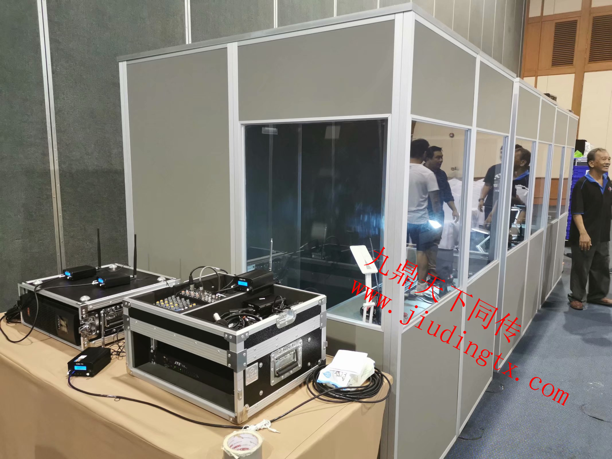 在会议前期,我们与泰国本地众多同传设备公司进行了沟通,经过各种沟通与考察,最后选定了曼谷本地一家具有丰富经验的设备公司-TG公司,前期进行了各种细节与技术沟通,在此,也非常感谢TG公司的精心准备与现场的认真负责任的设备安装调试,期待能有机会再合作。