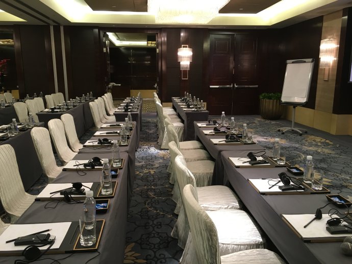 2016.1.15在北京四季酒店举办的中国对外投资环境和社会风险管理研讨会,九鼎天下翻译公司为其提供了同声传译设备租赁服务,来参会的嘉宾共计100人左右。